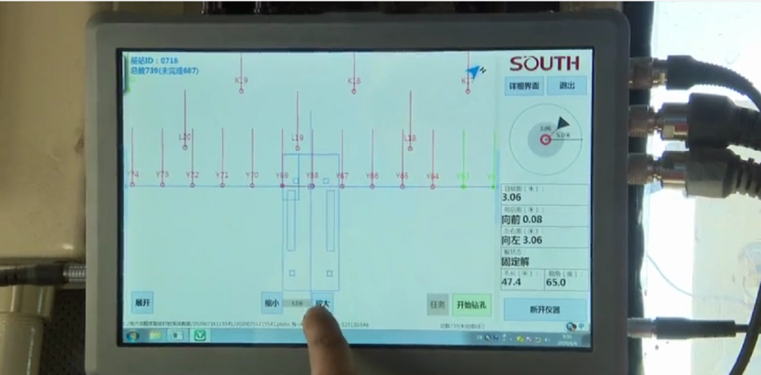 因為孔位信息只需在平板上就能查看,結合鉆機上的精準定位設備,鉆機師傅通過點擊平板上顯示的孔位,便能精準導航走鉆到所需打點的孔位處,不需要人為地在鉆機邊上進行導引走鉆,大大增加了安全性,在夜間能見度低時也能保證相應的工作效率。