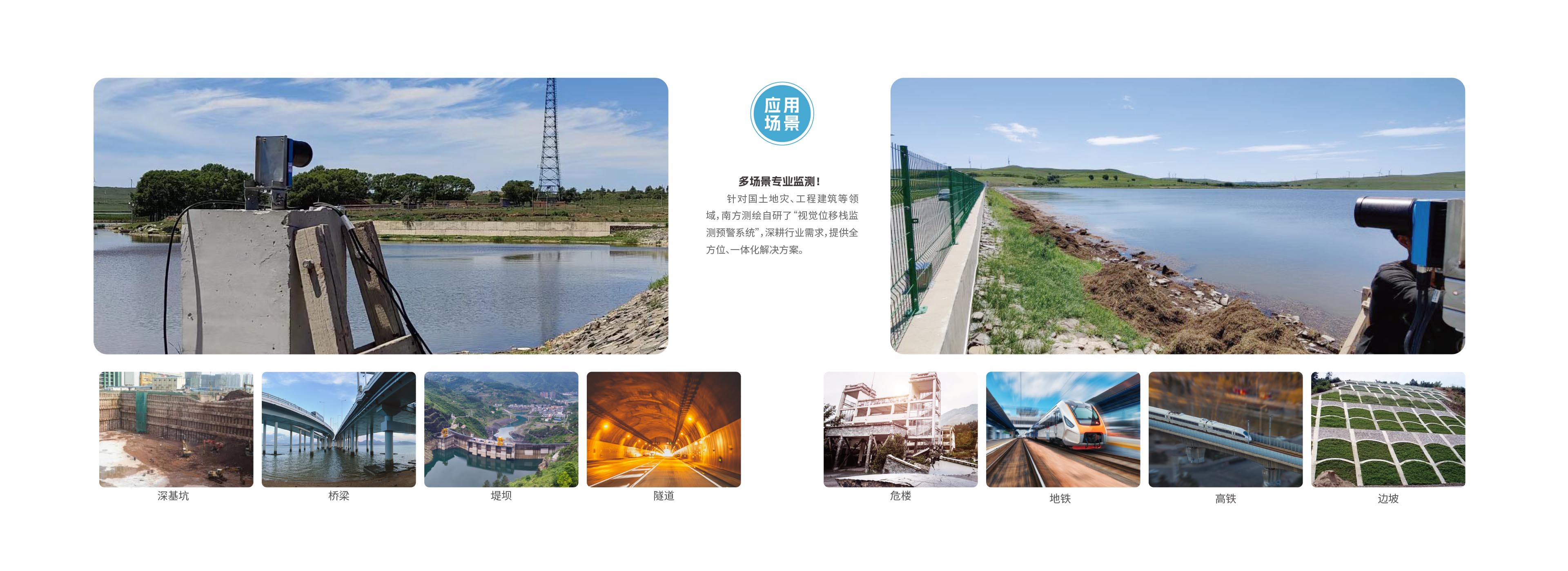 采用國(guó)際領(lǐng)先的數(shù)字圖像相關(guān)(DIC)技術(shù)與人工智能相融合,實(shí)現(xiàn)被測(cè)結(jié)構(gòu)全時(shí)、全域、全場(chǎng)的智能化位移監(jiān)測(cè)。適用于橋梁、隧道、邊坡、建筑物、基坑、高支模以及大壩等結(jié)構(gòu)動(dòng)/靜態(tài)變形的長(zhǎng)期監(jiān)測(cè)和預(yù)警。